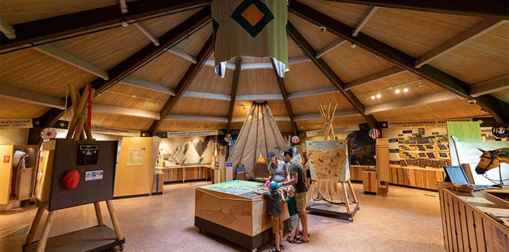 Situated within the Crow Reservation, this park was the home of Plenty Coups, last chief of the Crow. This day-use park preserves the log home, sacred spring, and farmstead of Chief Plenty Coups State Park. Visitors can walk the grounds and browse through the visitor center that traces the story of Chief Plenty Coups’ life.
